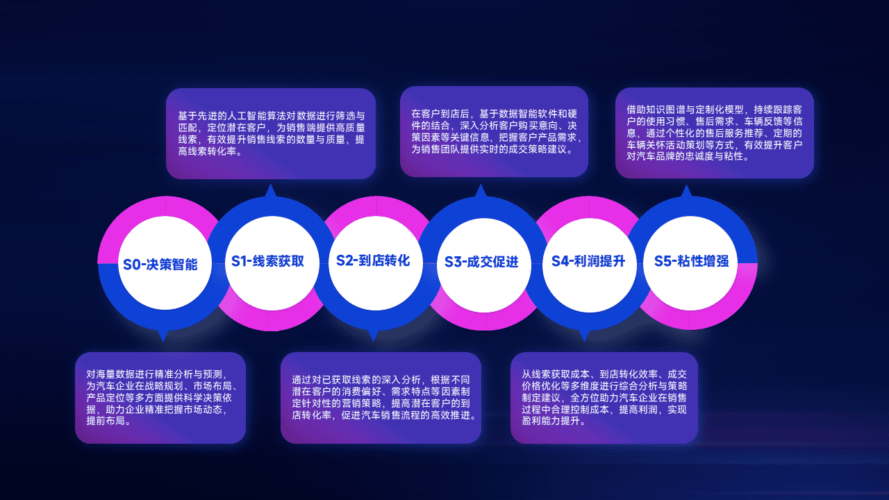 通过拓宽潜在客户来源、、、、优化线索分配并提高到店转化率,,以增强销售效率。。同时,,,,利用线索数据不断优化分析模型,,,有效提升转化率,,,,扩大营销影响力。。